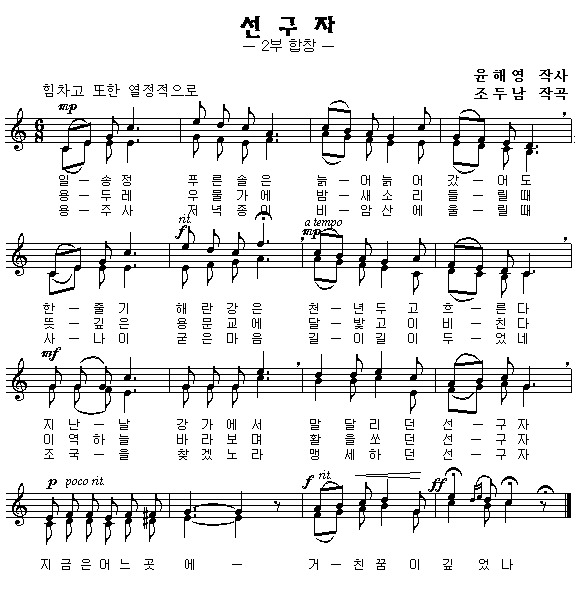 그 청년은 정중하게 조두남 선생에게 조선 독립군가의 작곡을 부탁하고
