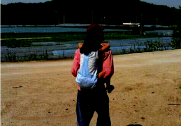 저는 그 아이를 등에 업었습니다.